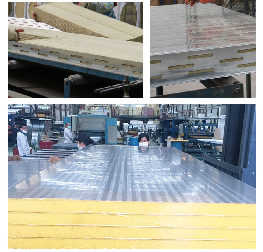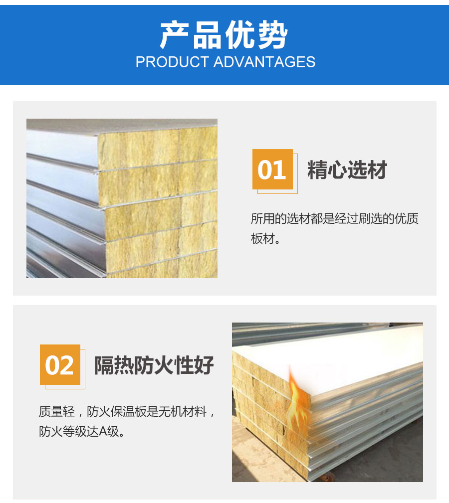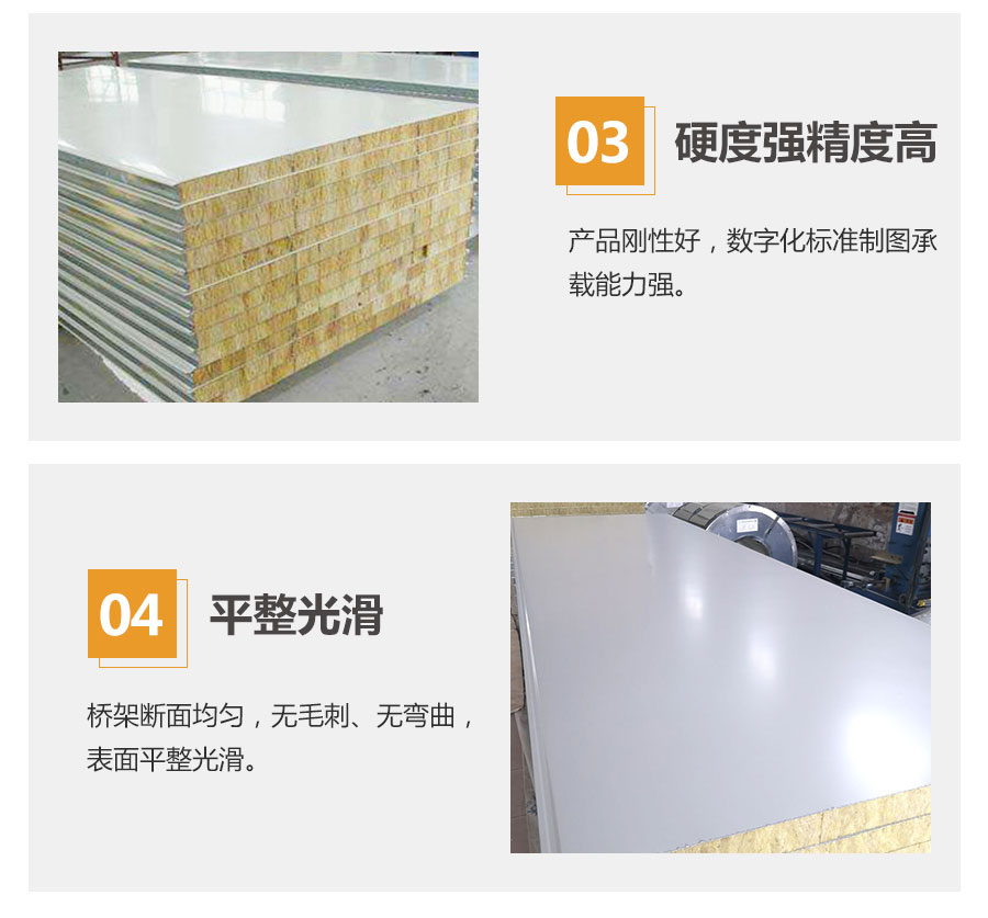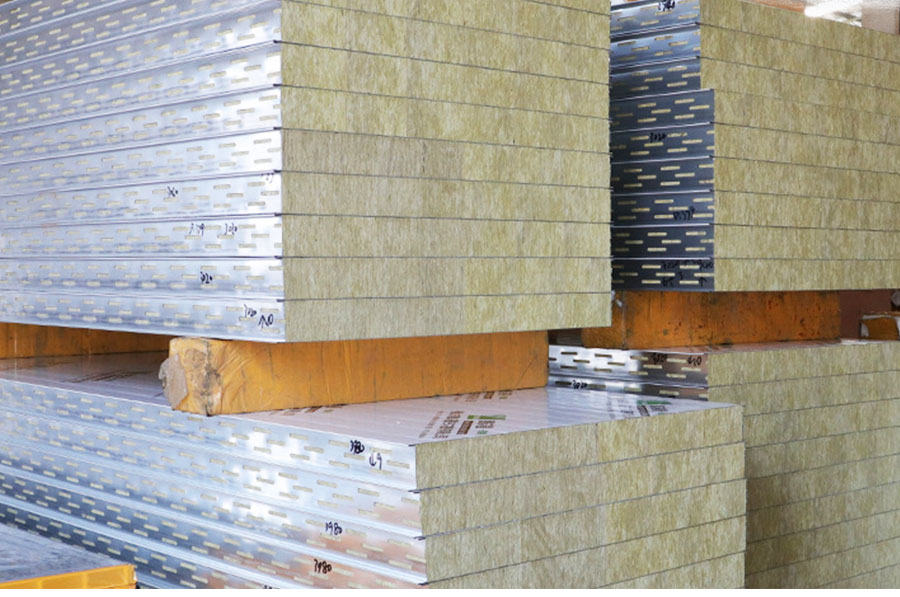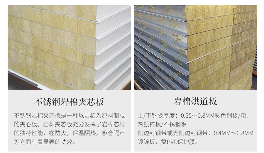 巖棉彩鋼夾芯板其芯材是以玄武巖及其它天然礦石等為主要原料,經(jīng)高溫熔融成纖維,加入適量粘結(jié)劑,固化加工而制成的。是同類(夾芯板系列)中耐火性能最強的一種新型防火板材。